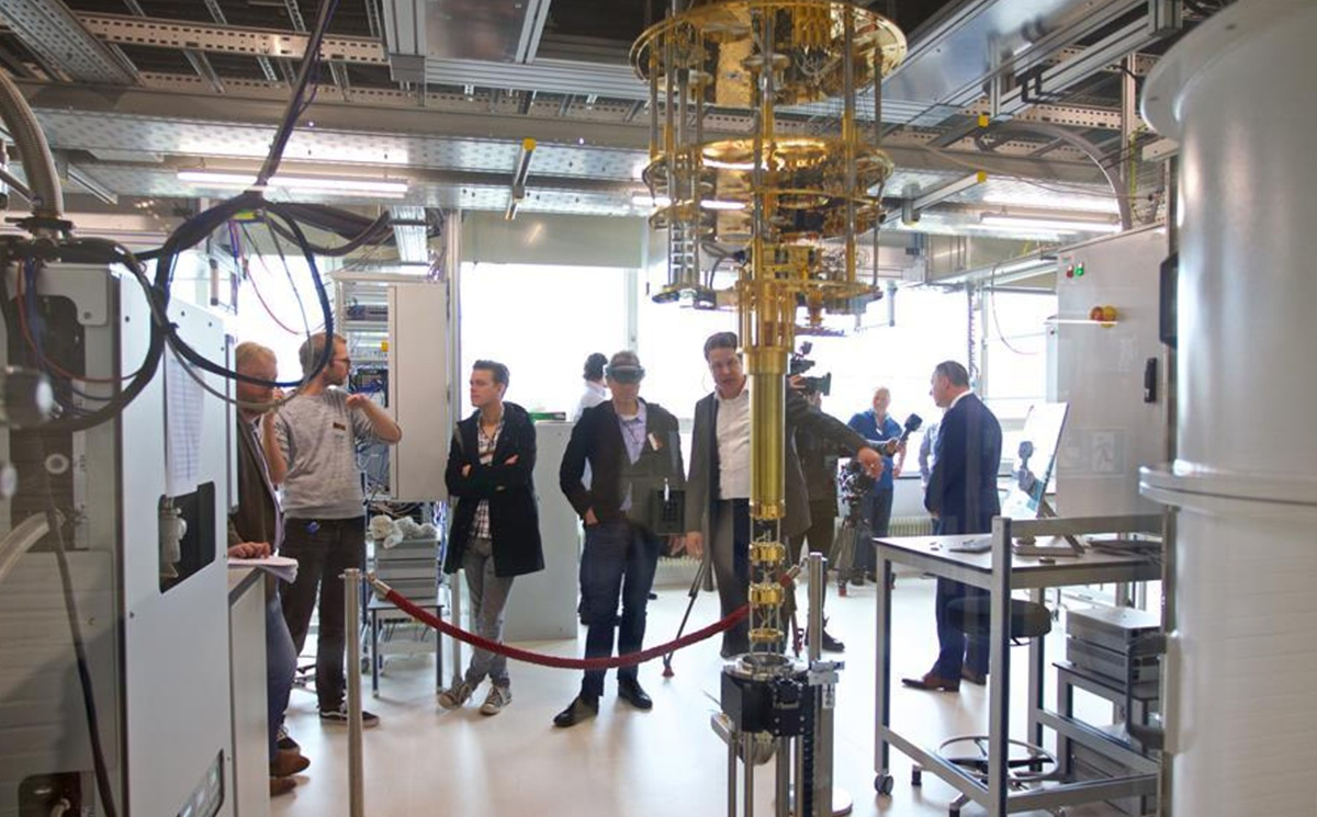 At TU Delft, LAB created one of the densest arrays of dilution refrigerators in the world. Highly technical tools, utilizing pumped helium gas, powerful compressors and magnets, the dilution refrigerators can achieve ultra low temperatures approaching absolute zero. Organizing the complex hose systems, cabling and control lines into accessible overhead racks gives rise to a new kind of technical architecture.
